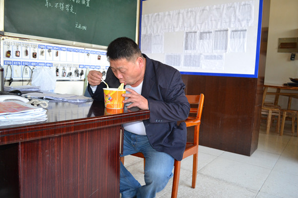駕駛員休息室內,王金付正忙著準備自己的午餐-一盒方便面,他是麗水至松陽班車的駕駛員,多年來,他自己也記不清楚有多少個除夕是在上班的了。